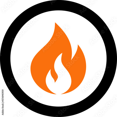 Vibrant orange flame icon contained within a bold black circle on a clean white background