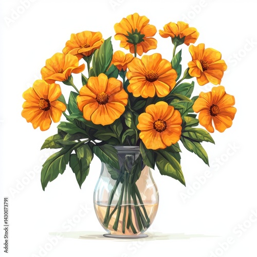 Vibrant orange flowers in glass vase home decor still life bright room artistic arrangement