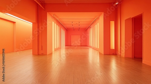 Vibrant Orange Interior Space with Modern Design and Abundant Light