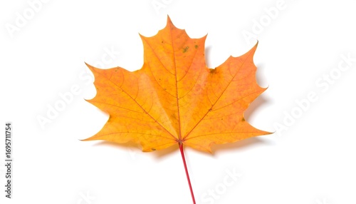 Vibrant orange maple leaf isolated on white, representing autumn season