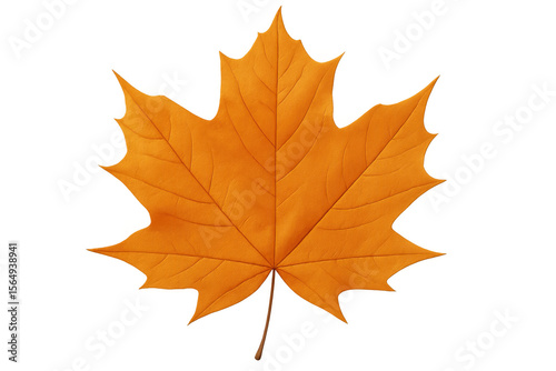 Vibrant orange maple leaf revealing intricate veins and autumn details, floating against transparent backdrop for seasonal graphic design