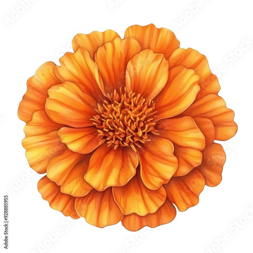 Vibrant orange marigold flower with intricate petals and a rich texture, perfect for botanical designs or nature-themed projects.