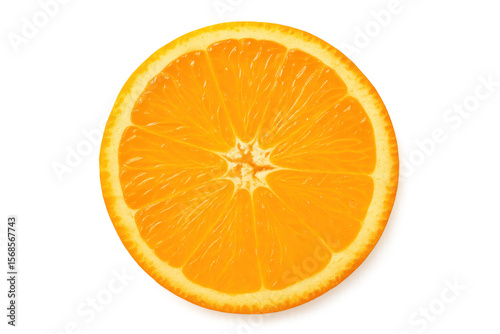 Vibrant orange slice highlighting citrus freshness, nutritional value against clean backdrop