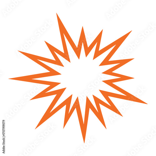 Vibrant orange starburst explosion shape with sharp points on a white background