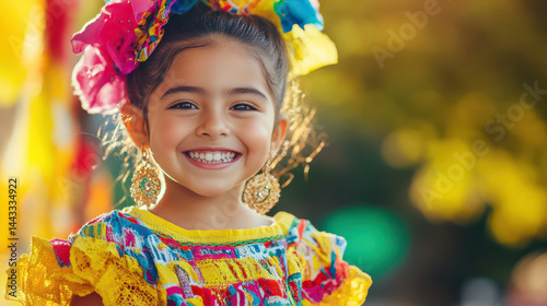 Vibrant Outdoor Celebration with Girl in Traditional Cinco de Mayo Costume