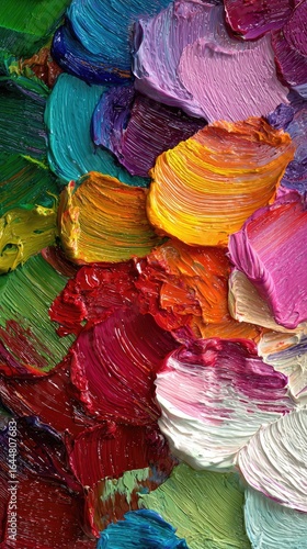 Vibrant paint strokes in a palette of bold colors
