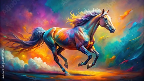 Vibrant painting of a majestic horse running , running, galloping, horse, animal, wildlife, nature, dynamic, energy, motion