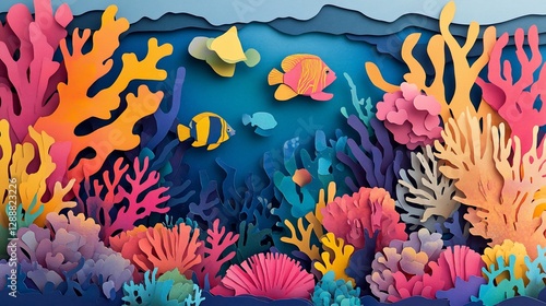 Vibrant Paper Cut Coral Reef Scene with Colorful Fish and Sea Life
