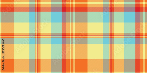 Vibrant pastel plaid pattern in cheerful orange, yellow, and aqua tones. Perfect for textile design, fashion, websites, and packaging.