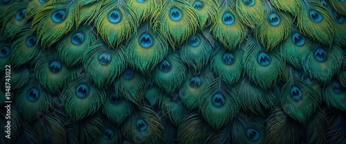 Vibrant Peacock Feathers Teal Green Blue Iridescent Pattern