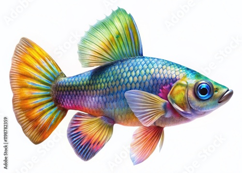 Vibrant Pecilia Fish, High-Resolution Stock Photo, Isolated on White Background
