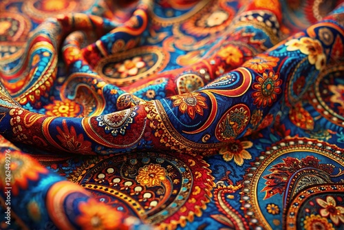 Vibrant Persian Paisley Pattern: Rich Colors & Intricate Design - Stock Photo