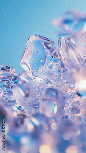Vibrant phone wallpaper featuring glowing ice blocks in motion under pastel lighting on a blue background.
