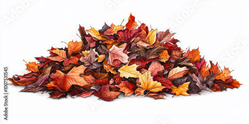 vibrant pile of autumn leaves in various shades of red, orange, and yellow