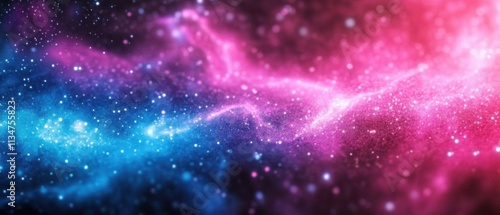 Vibrant Pink and Blue Nebula Galaxy Background, Cosmic Dust and Stars