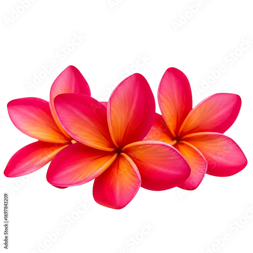 Vibrant pink and orange plumeria flowers isolated on white background
