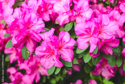 Vibrant pink azaleas blooming in a garden during springtime