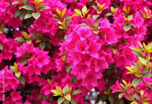 Vibrant pink bougainvillea blooms tightly clustered, creating a lush frame, nature, blossom