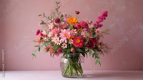 Vibrant Pink Floral Arrangement in Glass Vase, Stunning Bouquet of Pink, Orange, and Red Flowers