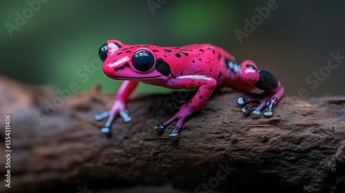 Vibrant pink frog perched on a branch