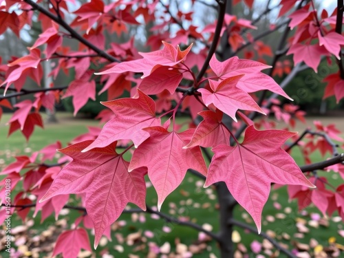 Vibrant Pink Maple Leaves Autumn Foliage Nature Background