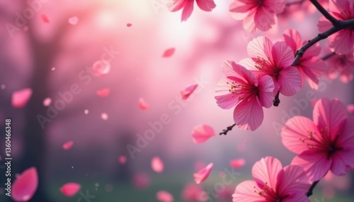 vibrant pink sakura petals swirl and dance in the air, colorful, petals