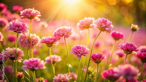 Vibrant Pink Summer Flowers in Sunlight - Rule of Thirds Composition