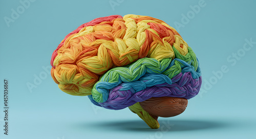 Vibrant Pixelated Rainbow Brain Symbolizing Diversity and Neurological Processes on a Light Blue Background