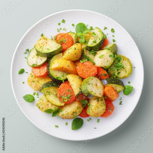 Vibrant plate of curried vegetables artfully arranged on a pristine white plate showcasing culinary creativity
