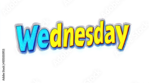 Vibrant, playful lettering showcases the word Wednesday in blue and yellow hues