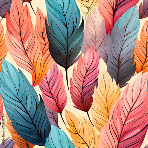 Vibrant Plume: A Dance of Colorful Feathers,Seamless Pattern Images.