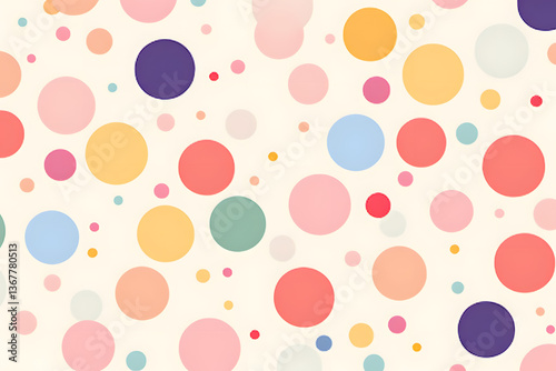 Vibrant polka dotted background with multicolored dots in various sizes scattered randomly on a pastel pink and white gradient surface.