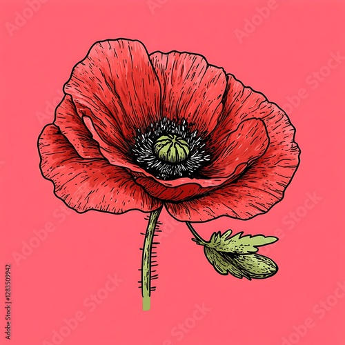 Vibrant Poppy Flower Vector Illustration for Design Projects