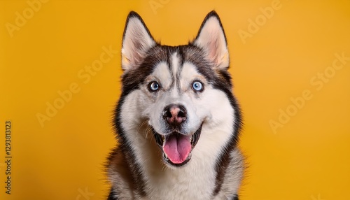 Vibrant Portrait of a Playful Siberian Husky with an Open Mouth, Captured against a Sunny Backdrop, Radiating Energy and Joy on a Bright Canvas.