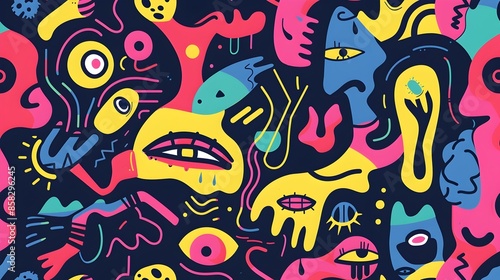 Vibrant Psychedelic Abstract Pattern with Playful Shapes and Funky Textures