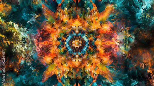 Vibrant Psychedelic Kaleidoscope Mandala Digital Artwork