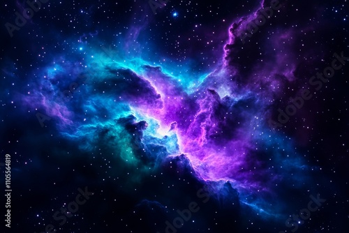 Vibrant Purple and Blue Nebula in Deep Space with Bright Stars and Cosmic Clouds