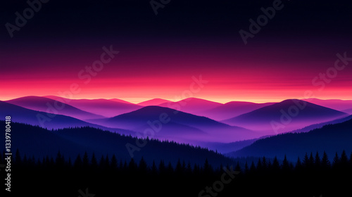 Vibrant Purple and Pink Sunset Over Layered Mountain Ridges