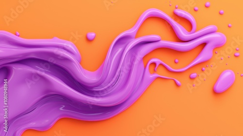 Vibrant purple paint flows across an orange surface, creating a dynamic contrast and showcasing texture and color play.