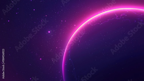 Vibrant Purple Planet with Energy Lines in a Starry Galaxy Background