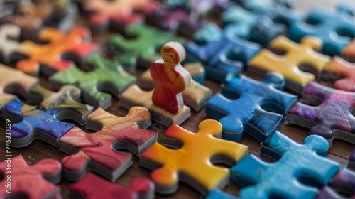 Vibrant puzzle figures representing diversity and inclusion, conceptual image of multicultural unity and harmony
