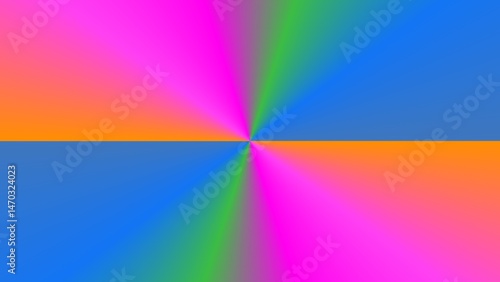 Vibrant radial gradient in pink, orange, and blue hues, creating a symmetrical, radiating pattern