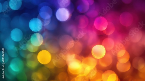 Vibrant Rainbow Bokeh Background with Colorful Circular Lights Creating a Dreamy and Festive Atmosphere for Various Design Projects and Creative Applications