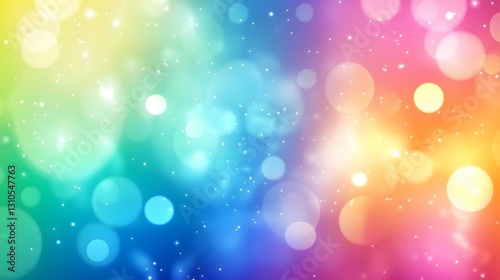 Vibrant rainbow bokeh background with glowing lights and sparkling particles. The soft, dreamy effect creates a magical and festive atmosphere, perfect for celebrations and creative designs.