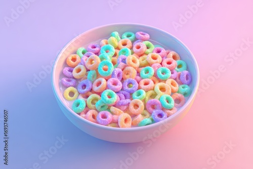 Vibrant Rainbow Cereal Rings in a White Bowl
