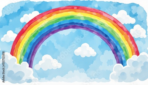 Vibrant rainbow over soft clouds sky digital illustration serene environment aesthetic viewpoint nature concept