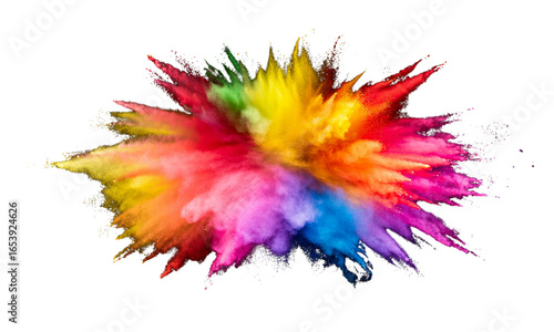 Vibrant Rainbow Powder Explosion; Abstract Colorful Holi Festival Design Element; High-Resolution Stock Photo.