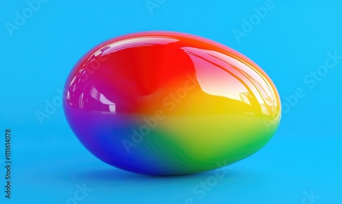 Vibrant Rainbow Sphere Rotates Smoothly on Blue Background, Showing Gradient Colors Vividly