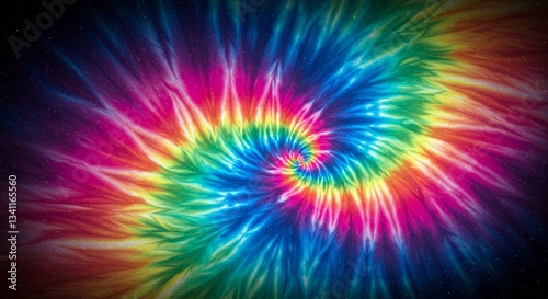 Vibrant Rainbow Tie Dye Spiral Pattern Psychedelic Swirl Textile Background Texture