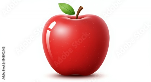 Vibrant Red Apple with Glossy Finish and Green Leaf Isolated on White Background